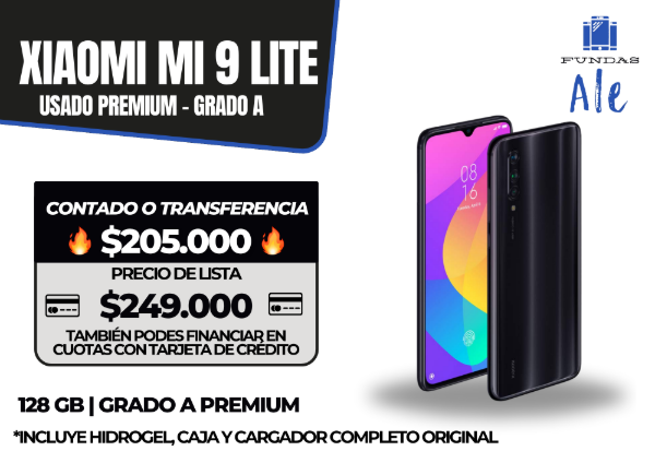 Xiaomi MI 9 LITE: Usado grado A, 128GB de almacenamiento, incluye cargador completo original
